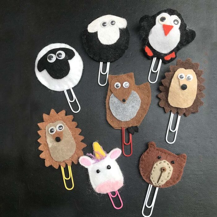 Cute little bookmarks made from felt with a large paperclip to clip onto pages of a book. Choice of animals shown, limited stock of some items. Contains small parts which may not be suitable for young children.