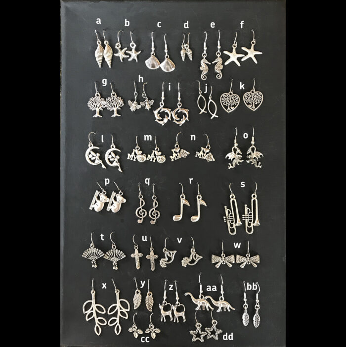 Large choice of handmade Tibetan silver earrings including cat and dog designs. Specify design required. Please note, the earring hooks are silver plated and the designs are alloy.